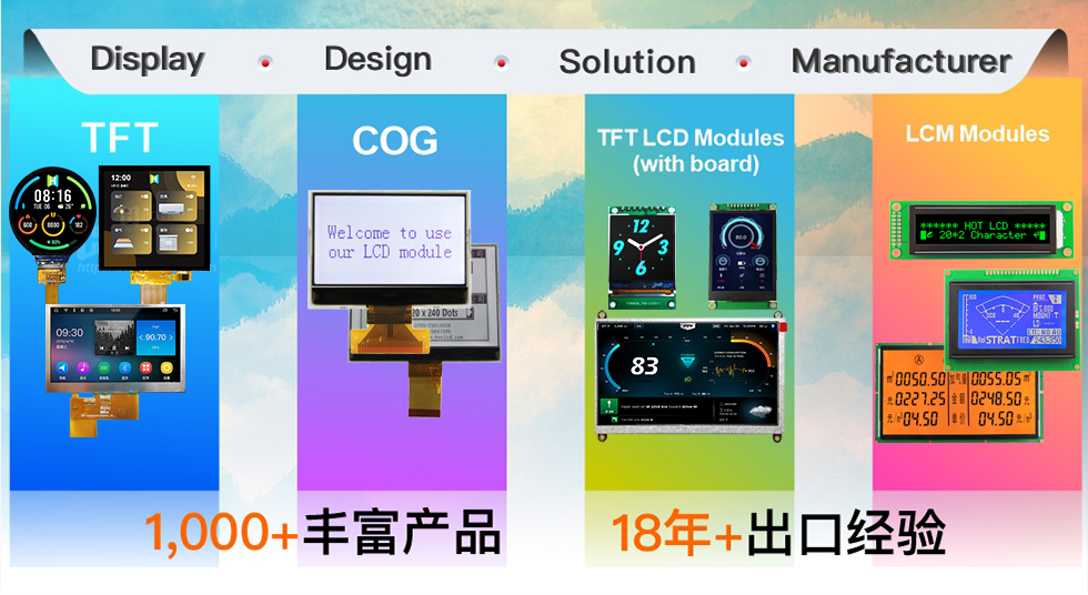 HOTLCD創(chuàng)立20年來(lái),已開(kāi)發(fā)出超過(guò)2000款標(biāo)準(zhǔn)和非標(biāo)準(zhǔn)液晶顯示屏及模組,廣泛應(yīng)用于人工智能、5G通訊、無(wú)人機(jī)、物聯(lián)網(wǎng)、車(chē)聯(lián)網(wǎng)、智能家居、智能穿戴、智慧交通、儀器儀表、醫(yī)療設(shè)備、工控設(shè)備、電力設(shè)備、勘探設(shè)備、航空航天、軍事裝備等諸多先進(jìn)領(lǐng)域。