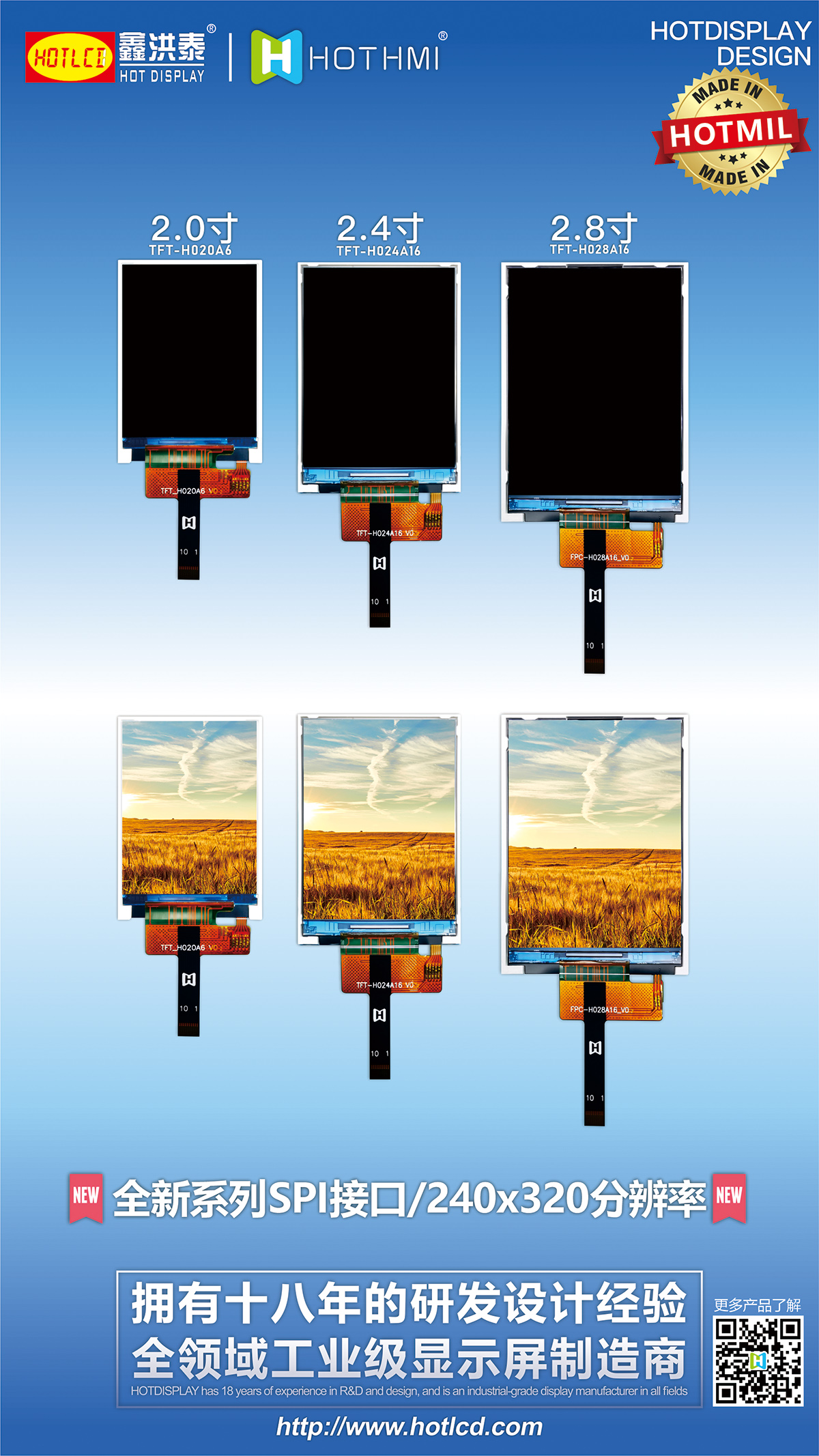 HOTLCD創(chuàng)立于2004年,位于全球電子產(chǎn)業(yè)鏈配套最快最全的粵港澳大灣區(qū),是一家專(zhuān)業(yè)從事新一代信息產(chǎn)業(yè)之LCD液晶顯示模組、TFT顯示屏產(chǎn)品的研發(fā)、生產(chǎn)、銷(xiāo)售和服務(wù)的深圳市高新技術(shù)企業(yè)。