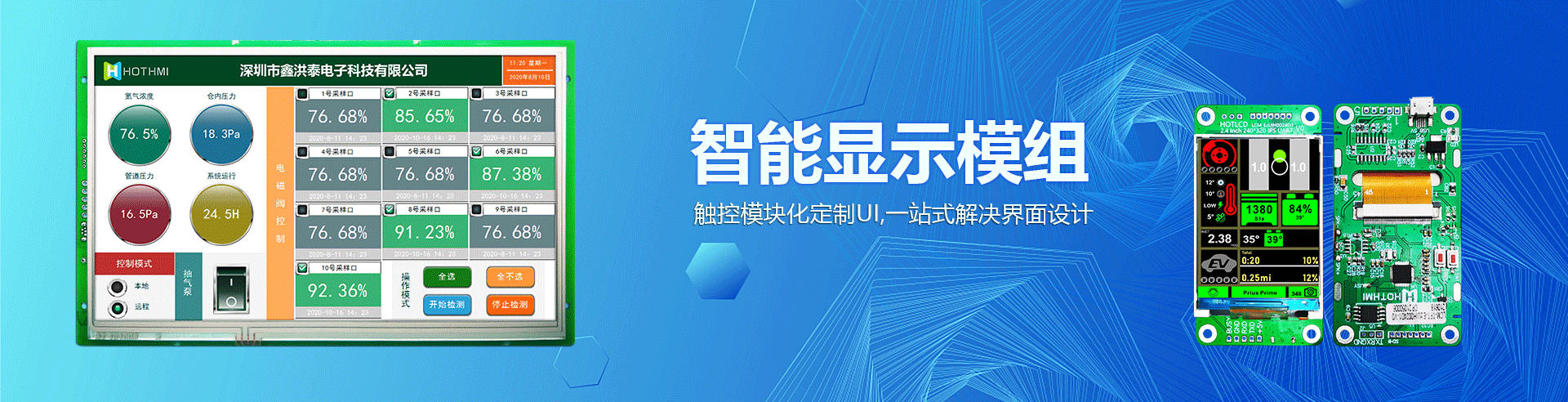 鑫洪泰EzUI系列智能液晶顯示模塊,即:E(easy容易的)、z(zero零代碼)、UI(用戶界面)。 EzUILet 系列模塊最大的特色為使用簡便、功能豐富,用戶對其使用可簡可繁。用戶可以使用界面開發(fā)工具軟件(EzUITool)進(jìn)行人機(jī)界面的設(shè)計(jì)、編輯、控件配置、響應(yīng)設(shè)置等,將工具軟件生成的資源文件復(fù)制到 EzUILet 系列模塊之中,便可達(dá)成所需人機(jī)交互界面的設(shè)計(jì)制作,而無需用戶單片機(jī)或其它控制器的編程控制。而為滿足有特殊要求的用戶,EzUILet 系列模塊還保留有大部分顯示控制指令,以便于用戶可以更自由的對模塊顯示進(jìn)行控制。 EzUILet系列與 EzUI 系列:EzUILet系列模塊由 EzUI 系列模塊衍生,也屬于 EzUI 系列模塊;相對EzUI 系列模塊,EzUILet系列精簡了部分控件的屬性,并且將模塊 USB 設(shè)備接口改為虛擬串口,資源文件的寫入方式與原 EzUI 系列不同;EzUILet 系列模塊還將資源存儲器的容量降低,使之更合理,可靠性更好。EzUILet系列當(dāng)中的無觸摸版本需要用戶 MCU發(fā)送按鍵消息,并由這些按鍵消息觸發(fā)模塊內(nèi)部 GUI系統(tǒng)的事件,這點(diǎn)與帶觸摸的 EzUI 系列模塊是最大的不同之處。EzUILet 系列模塊的 GUI 系統(tǒng)當(dāng)中各個控件的命名仍使用 EzUI 系列模塊的命名。