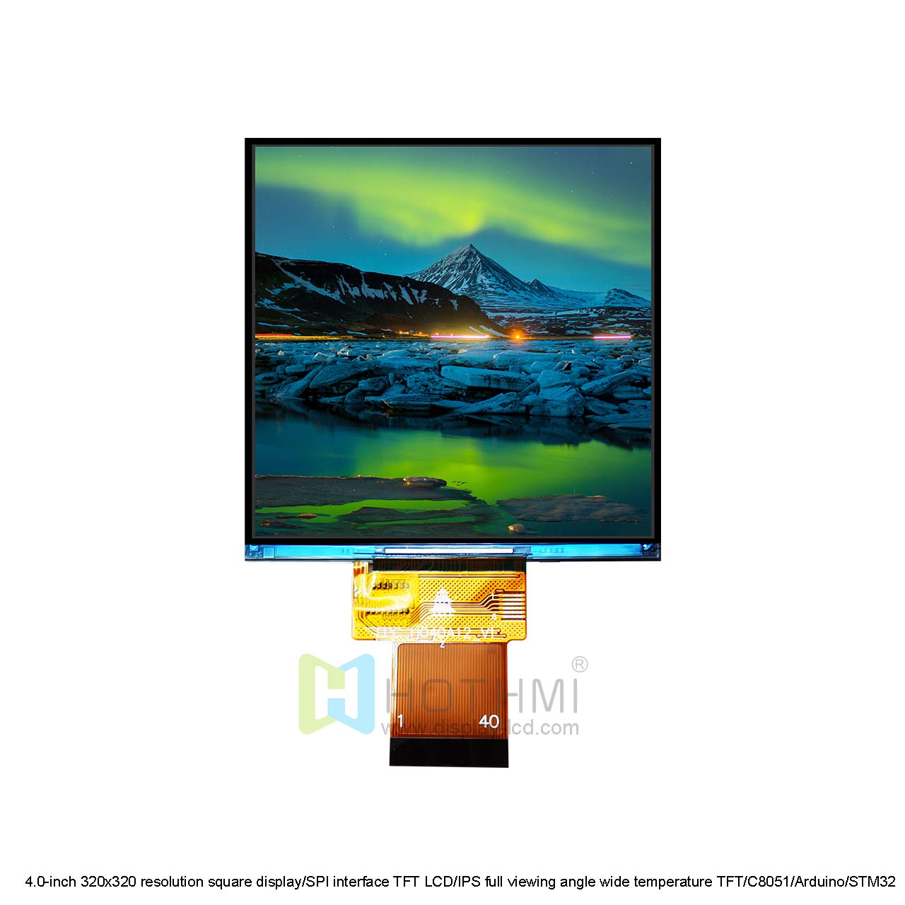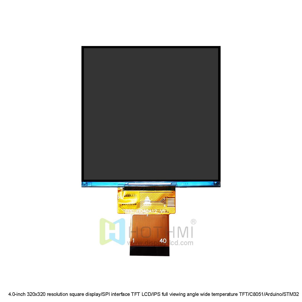 This standard 4.0-inch square display TFT-H040A12DHIIL4N40 has a resolution of 320x320 pixels, an IPS full viewing angle display, and has a high-quality effect no matter which direction it is viewed from, with a brightness of 450cd/m2. The compact size, 3.3V low voltage power supply, and impressive display quality of this display make it an excellent choice for projects that require portrait mode visual output without touch function.