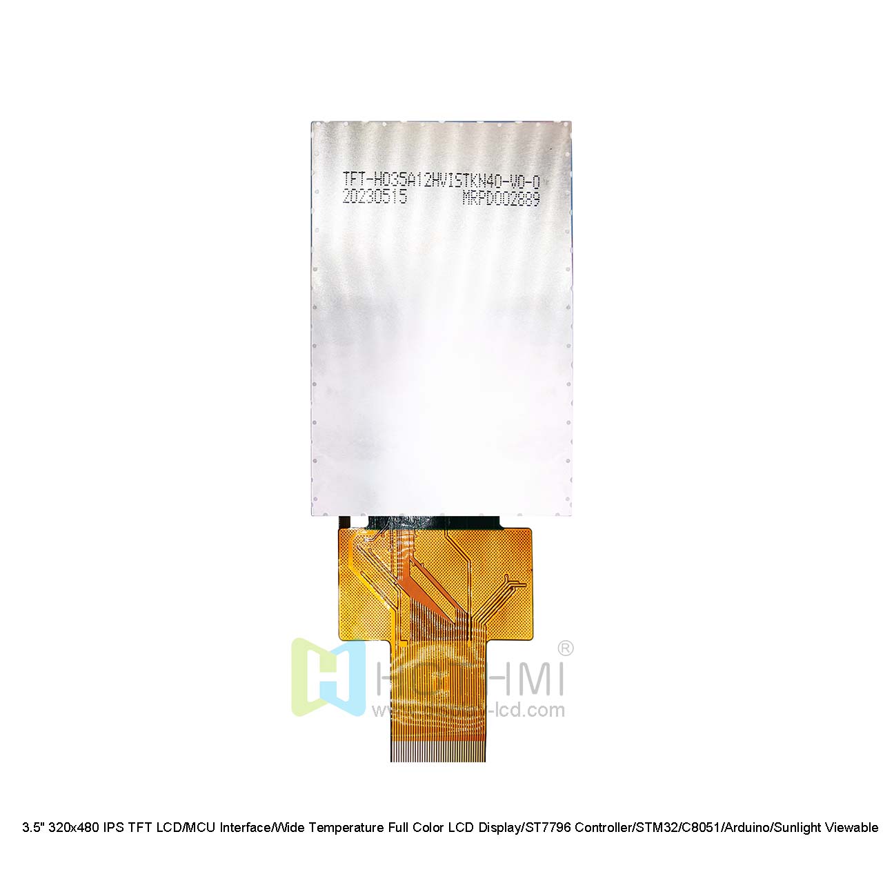 3.5-inch 320x480 IPS TFT LCD/MCU interface/wide temperature full-color LCD display/ST7796 controller/STM32/C8051/Arduino/sunlight viewable TFT-H035A12HVISTKN40This 3.5-inch TFT display has extremely high brightness (1,000 nits), full color and IPS resolution, so you will have a good picture no matter which direction you look at it. It is ideal for a variety of applications. This display can be used in direct sunlight, indoor lighting or dark environments. It can be mounted above, at eye level or below eye level without color inversion.