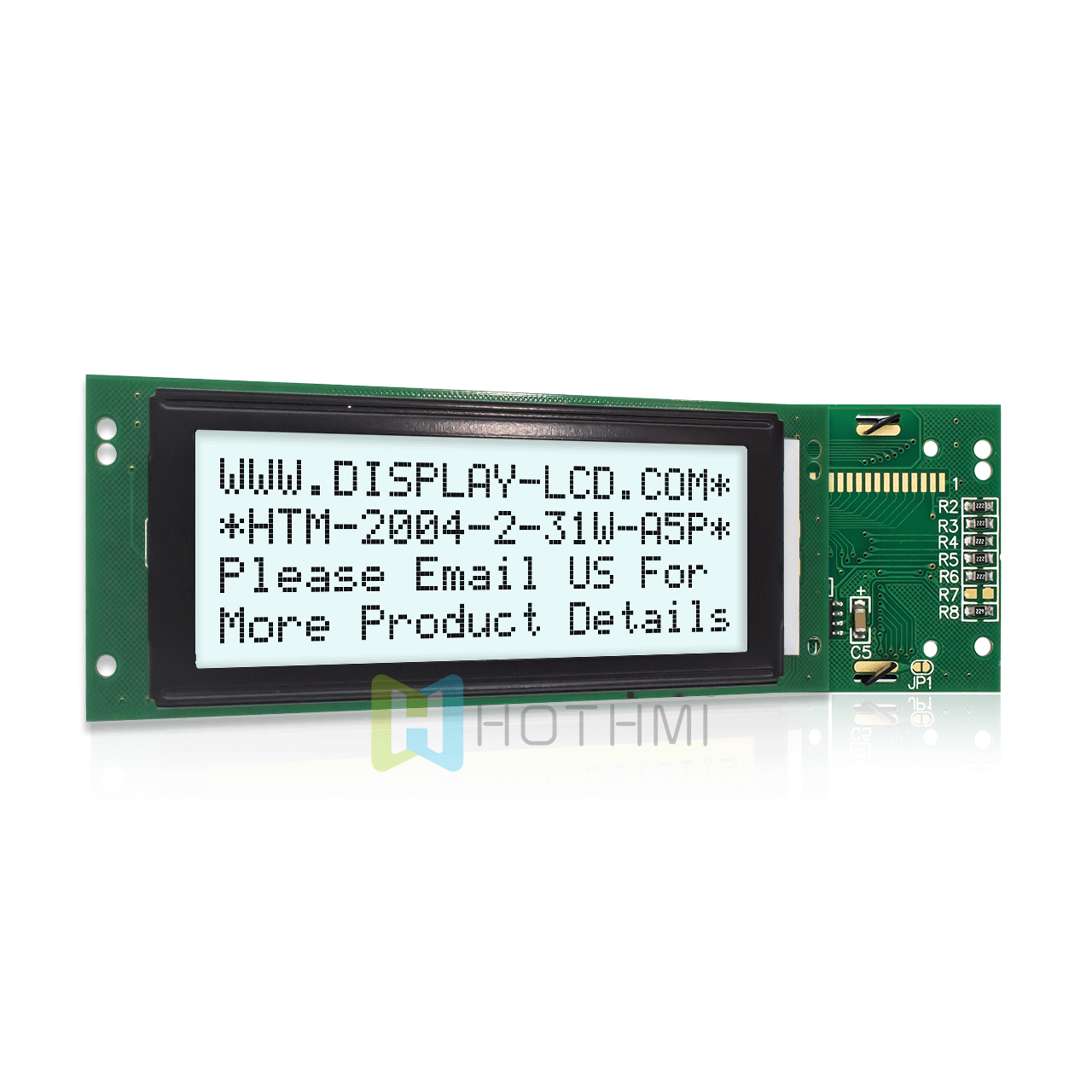 • Model : 4X20 character LCD module/STN+ display/with white backlight/white background gray text display HTM-2004-2-31W-A5P