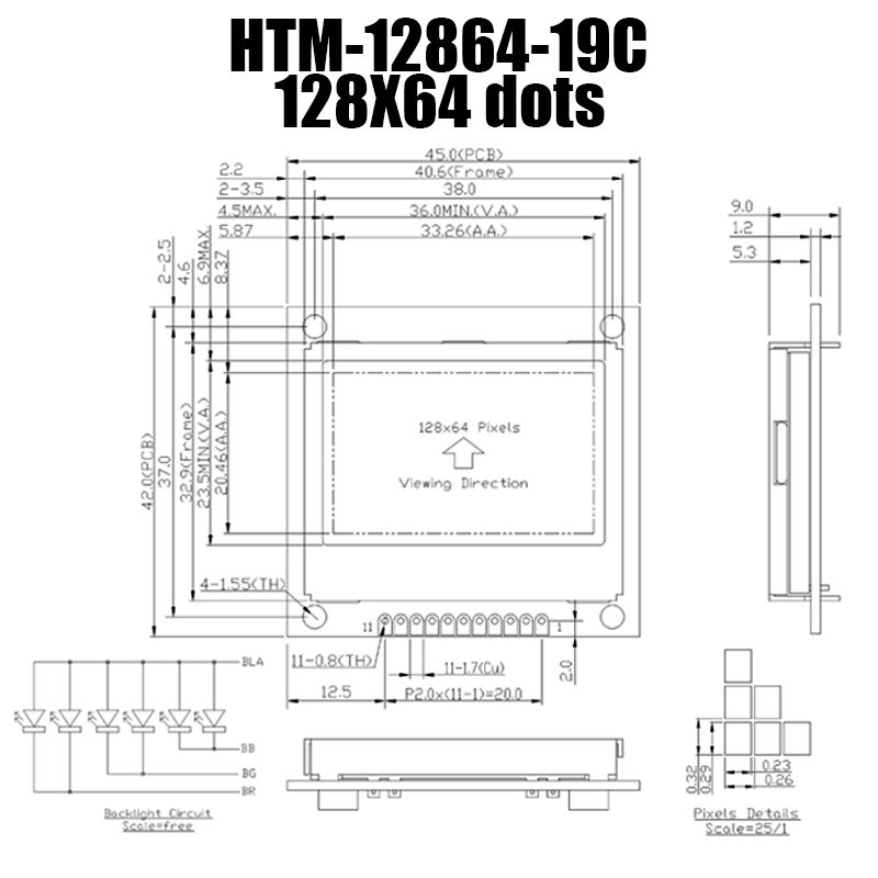 • Model : 128x64 LCM Graphic/HTM12864-19C