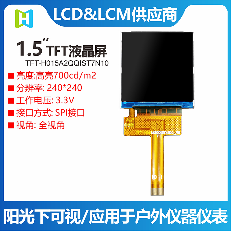 Location:Home  >  Product center  >  TFT display  >  TFT round screen | TFT square screen | long strip TFT display  >  1.54寸TFT正方形/240*240分辨率/全視角/SPI接口/1.5寸方屏/戶外儀器儀表/TFT-H015A2QQIST4N10