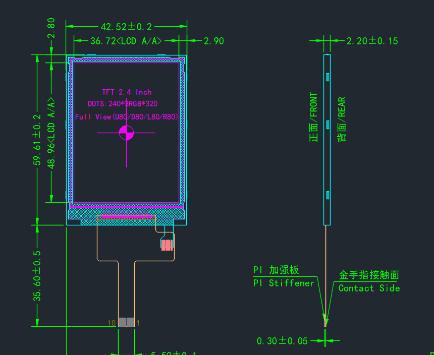 Location:Home  >  Product center  >  TFT display screen  >  Wide View TFT Display Screen  >  2.4寸TFT/240*320分辨率/SPI接口/全視角/陽(yáng)光下可讀/TFT-H024A16QVIST6N10