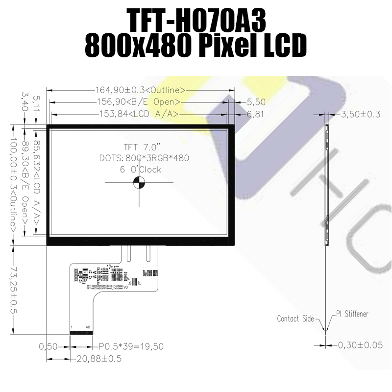 TFT-H080A5HDIFT6N40 | 7.0" LCD | 800x480 Pixels | For Industrial Control | Driver Chip EK9716BD4+EK73002AB2