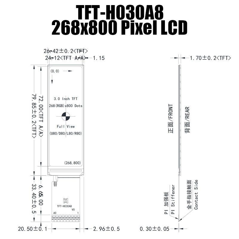 Introducing our cutting-edge TFT-H030A8ZCISTKN40 3.0 Inch IPS TFT Display Panel, meticulously crafted for precision and performance in instrumentation applications. Elevate your visual experience with a display that seamlessly combines technological excellence with wide temperature adaptability.