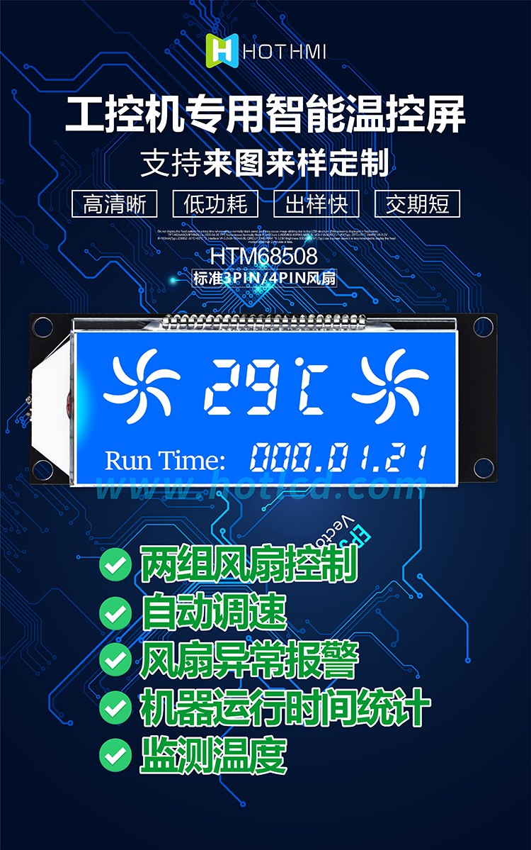 LCD industrial control computer, commercial dedicated temperature control screen, box temperature display, intelligent segment code LCD screen HTM68508