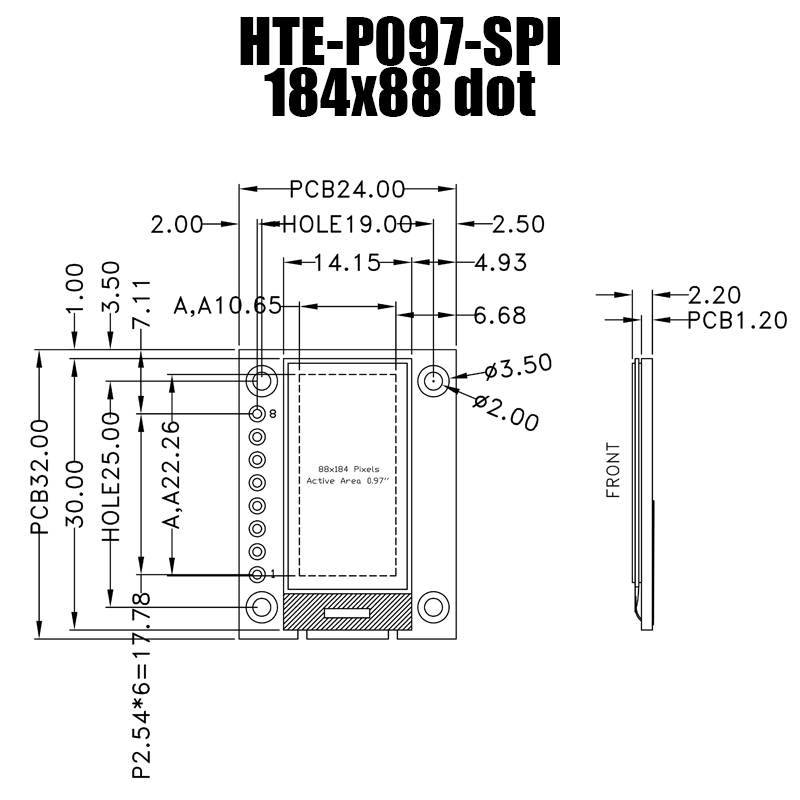 0.97" Inch 88x184 COG SSD1680 E-paper Display Module With Equipment Control PCB Frame HTE-P097-SPI