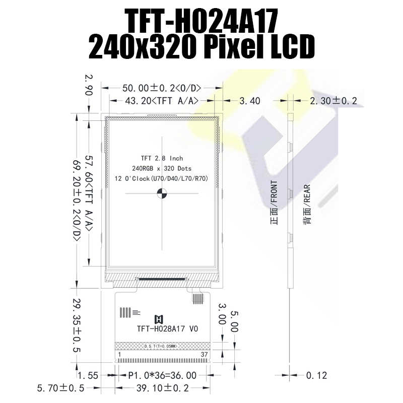 2.8 Inch 240x320 Dots MCU TFT LCD Display IC ST7789/TFT-H028A17QVTST2N37