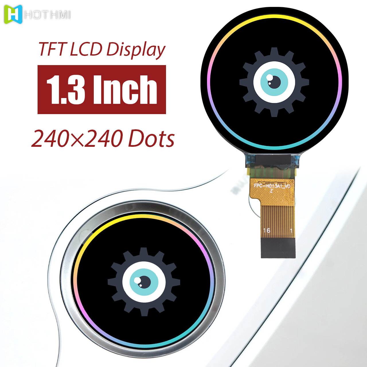 The TFT-H013A6QQIGC7N10-V1 Is A Circular IPS TFT-LCD Screen With A Display Diameter Of 1.28 Inches And A Resolution Of 240x240 Pixels. This Circular TFT Display Consists Of An IPS TFT-LCD Panel With A Built-In GC9A01 Driver IC That Communicates Via An SPI Interface.