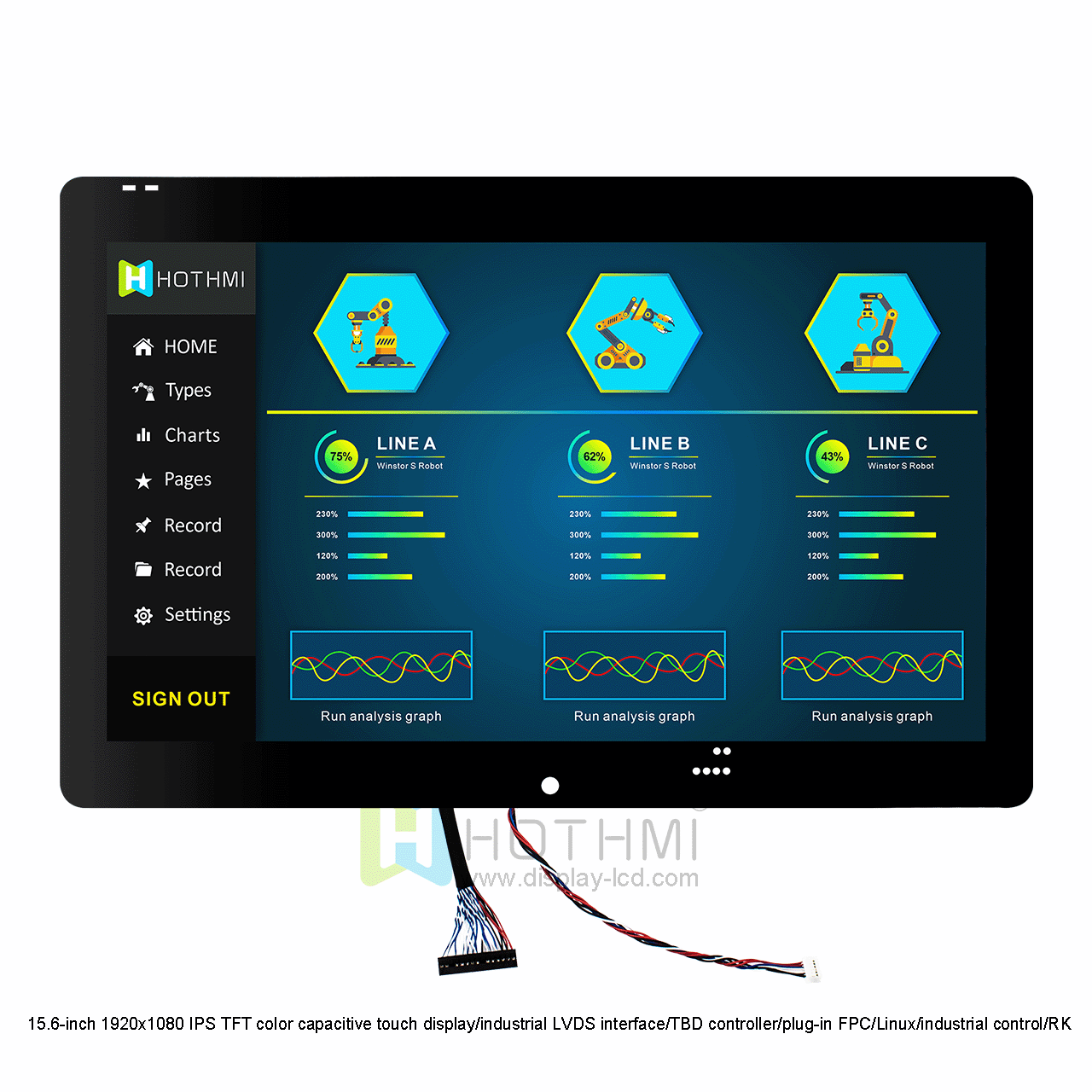 • Model : 15.6-inch 1920x1080 IPS TFT color capacitive touch display/industrial LVDS interface/Linux/industrial control/RK