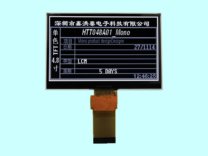 | 4.8‘’Mono TFT/400*240 Image resolution/MONO TFT/HTT048A01 | MONO TFT | 400x240 |