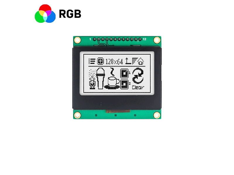 | 2" 128x64 Graphic LCD | 128 x 64 Graphic LCD | FSTN Positive | SPI Interface | RGB Red Green Blue Backlight HTM12864-117-35S-A3P | Graphic LCD Module | 128x64 |