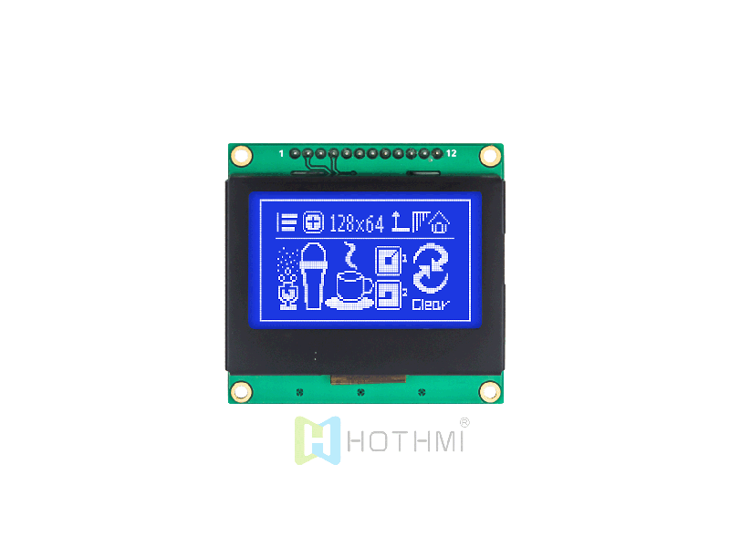 | 2.7 inch LCD Graphic 128x64 Module/STN Positive/White Backlight/Arduino/Gray Background with Blue Text HTM12864-122-11W-A3P | Graphic LCD Module | 128x64 |