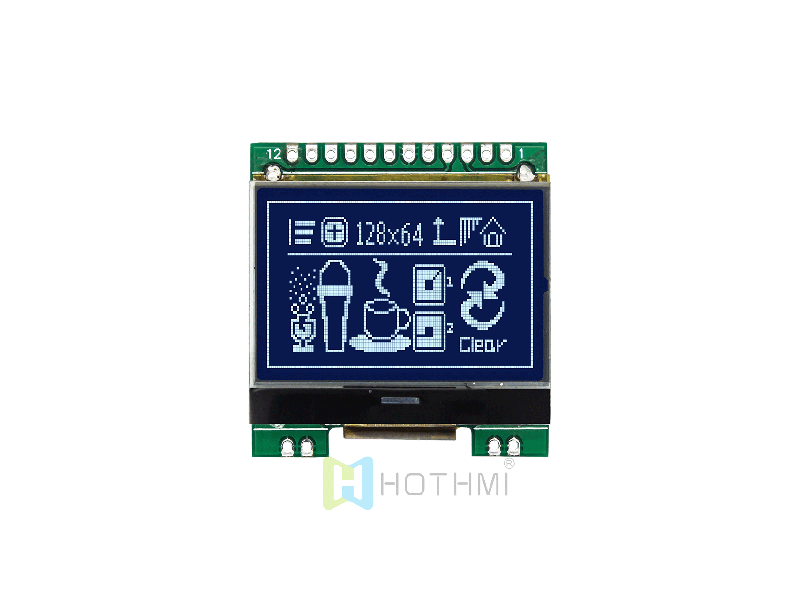 | 3.2"128X64 graphic LCD module/STN negative display/blue background white pixel display/transmissive polarizer HTM12864B-25W-A5P | Graphic LCD Module | 128x64 |
