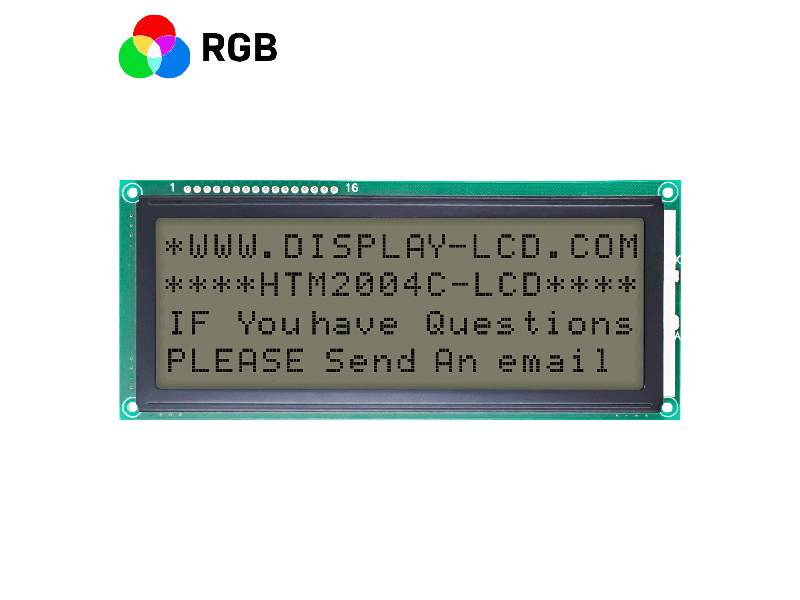 5.0 inch 20x4 LCD Character Module | FSTN Positive Display,Red, Green and Blue Backlight HTM2004C-35S-A5P Character LCD Module 20x4 146X62.5X12.6 123X43 118.84x38.47 6H R/G/B 16PIN MCU Anti-static ESD 8KV -20~70℃ 5.0V ST7066U