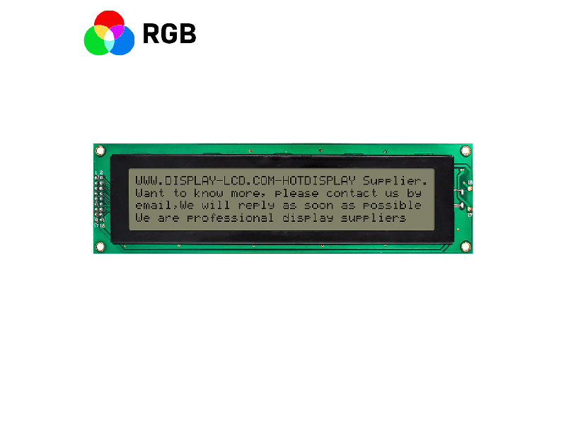 HOTDISPLAY offers a wide range of standard Character LCD modules for customers' application. Our LCD character displays are available from 8x2, 12x2, 16x1, 16x2, 16x4, 20x2, 20x4, 24x2 through to 40x4 formats with 5x8 dot matrix characters. The LCD panel technologies include TN, STN, FSTN, FFSTN types and also with polarizer positive mode and negative mode options. There are different LED backlights are available in various colors including yellow/green, white, red, blue, green, amber, and RGB LEDs as well as no backlight option.