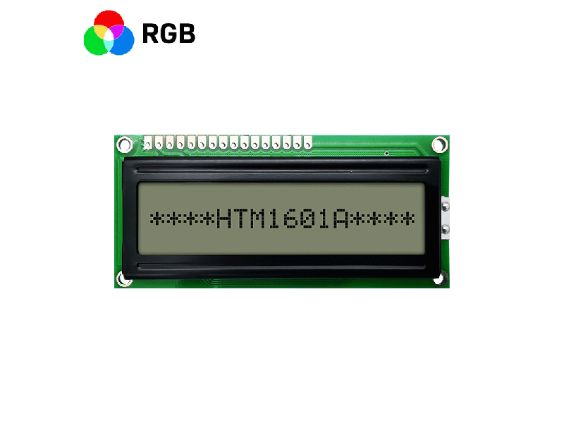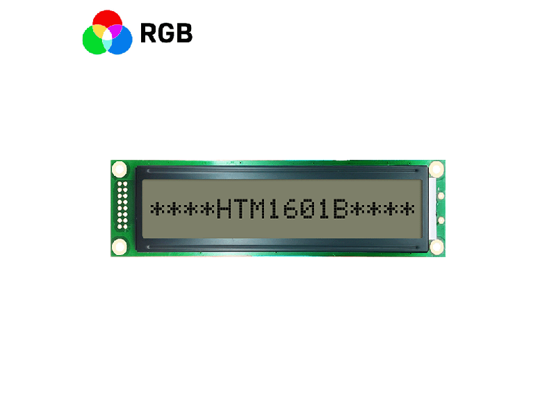 1X16 Character LCD Display | FSTN+ RGB Backlight - Arduino HTM-1601B-35S-A5P Character LCD Module 16x1 151.0x40.0x9.6 120.0x23.0 114.0x14.54 6H R/G/B 16PIN MCU Anti-static ESD 8KV -20~70℃ 5.0V ST7066U
