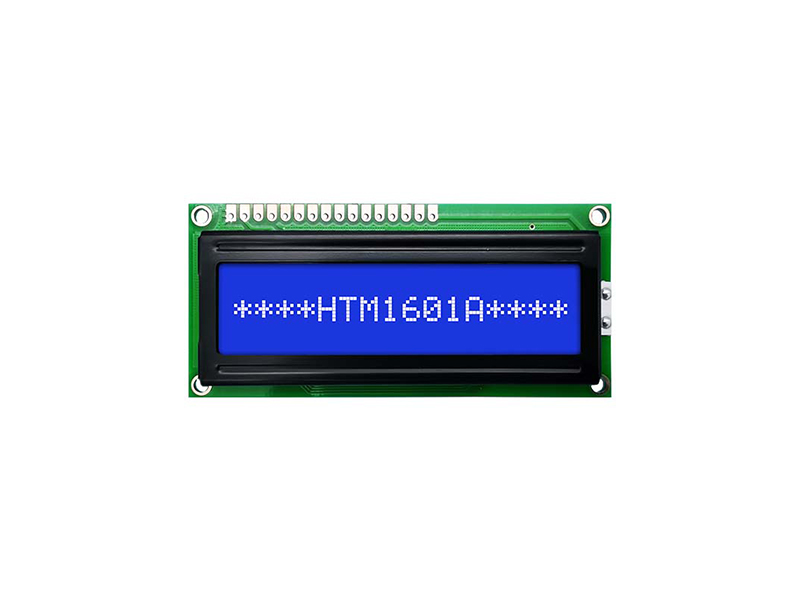 1X16 Character Monochrome LCD Display | STN+Gray Background Blue Characters-Arduino HTM1601A-11W-A5P Character LCD Module 16x1 80.0x36.0x13.1 64.5x16.0 59.46x5.96 6H white 16PIN MCU Anti-static ESD 8KV -20~70℃ 5.0V ST7066U