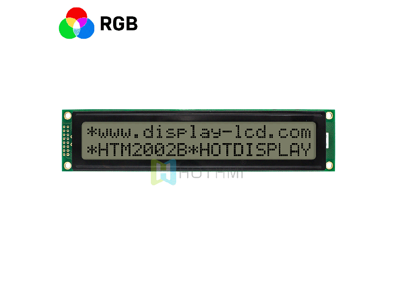 2x20 FSTN (+) character display | transmissive LCD display Module | red green blue LED backlight HTM2002B-35S-A5P Character LCD Module 20x2 180.0x40.0x11.0 149.0x23.0 142.8x20.64 6H R/G/B 16PIN MCU Anti-static ESD 8KV -20~70℃ 5.0V ST7066U