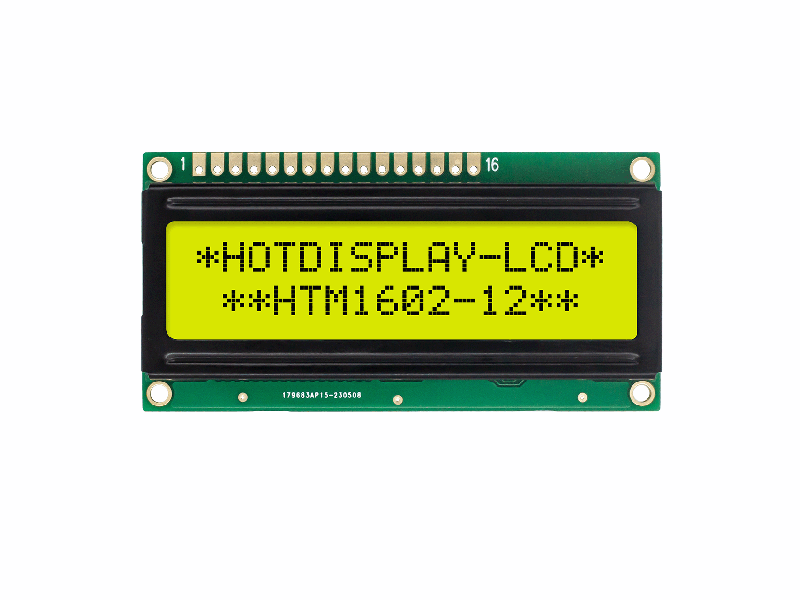 16X2 Character LCD Mono Display | STN+ Gray with Yellow/Green Backlight-Arduino HTM1602-12-11Y-A5P Character LCD Module 16x2 72.0x36.0x10.1 64.5x16.0 56.2x11.5 6H YG 16PIN MCU Anti-static ESD 8KV -20~70℃ 5.0V ST7066U