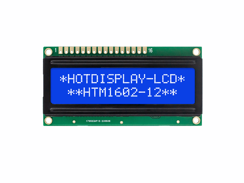 Hola-2X16 Character Arduino LCD Display | STN- Blue Display with White Backlight HTM1602-12-25W-A5P Character LCD Module 16x2 72.0x36.0x10.1 64.5x16.0 56.2x11.5 6H white 16PIN MCU Anti-static ESD 8KV -20~70℃ 5.0V ST7066U