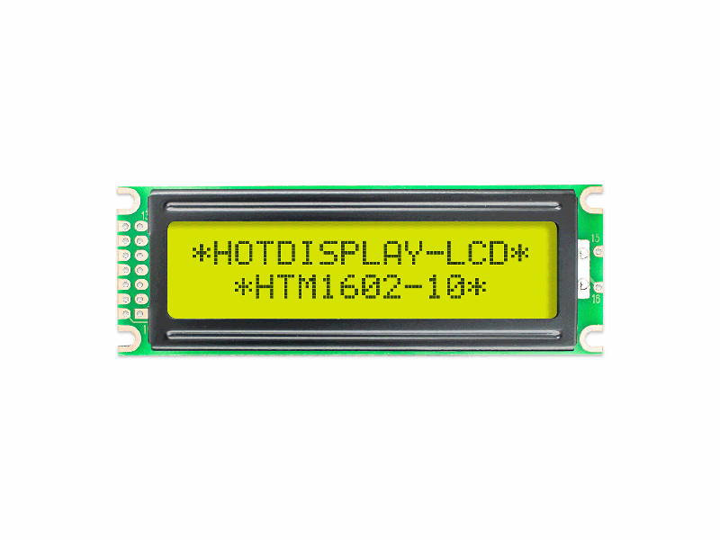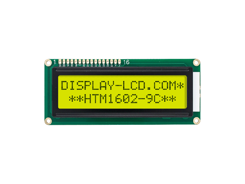 2X16 Character LCD Module Display | STN+ Gray Display with yellow/green Side Backlight-Arduino HTM-1602-9-11Y-A5P Character LCD Module 16x2 100.0x38.0x13.0 80.0x20.5 76.37x16.02 6H YG 16PIN MCU Anti-static ESD 8KV -20~70℃ 5.0V ST7066U