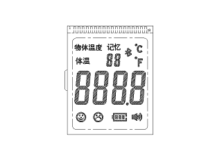Infrared temperature instrument LCD HTP68465 TN-LCD BODY8888CF 24.7x31.3x2.8 21.7x26.3 Infrared temperature instrument 6H LED 18 ZEBRA 0-50 3.0V