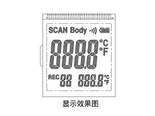 Infrared temperature instrument LCD TN-LCD SCAN8888CF 28.0x32.0x2.8 25.0x26.0 Infrared temperature instrument 6H LED 25 ZEBRA 0-50 3.0V