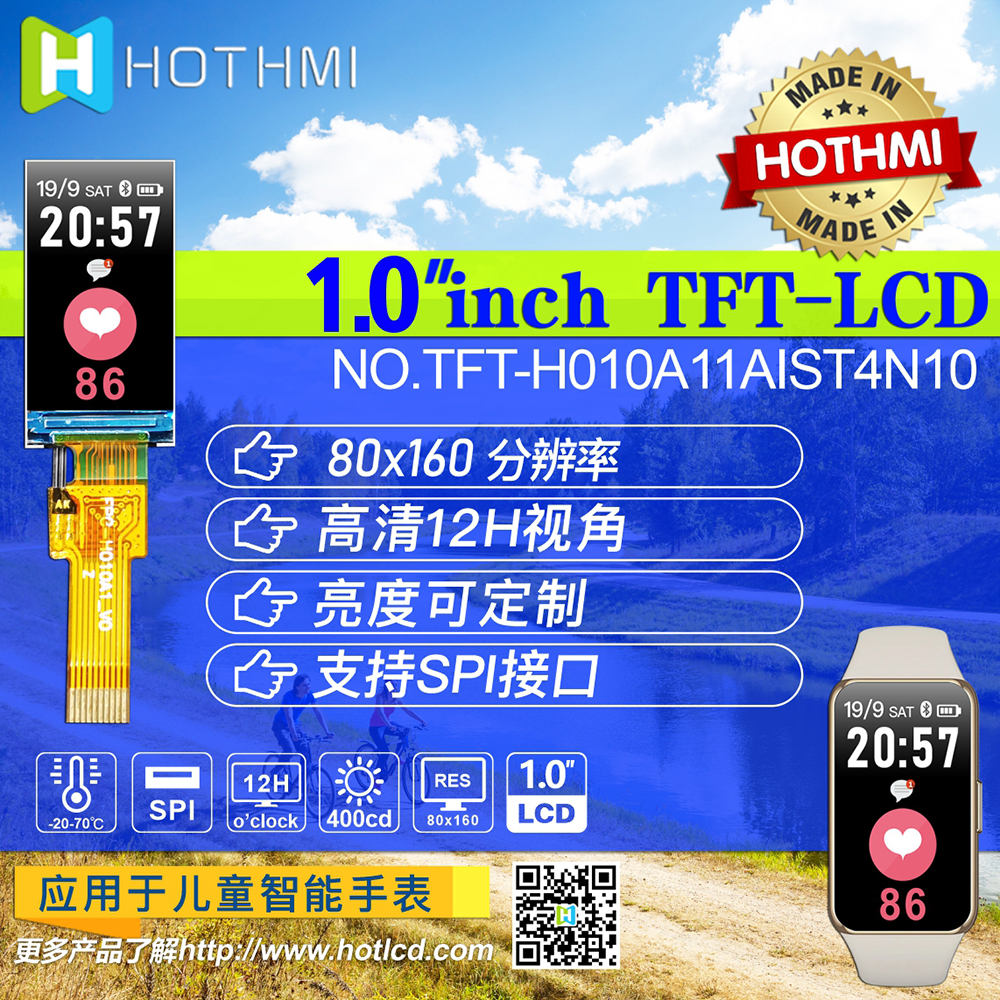 產(chǎn)品描述 TFT-H010A11AIST4N10是一款1.0英寸全彩TFT液晶顯示模組,分辨率為80x160像素,寬高比為1:2。 TFT模塊采用ST7735S驅(qū)動IC,支持SPI接口。 采用IPS面板的TFT模組具有廣視角優(yōu)勢(左80度/右80度/上80度/下80度),典型對比度為800:1,模組亮度高達(dá)400尼特( 典型值)。 模塊工作溫度范圍-20℃~+70℃,儲存溫度范圍-30℃~+80℃。