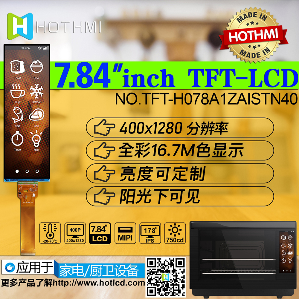 TFT- H078A1ZAISTN40是一款7.84寸采用IPS面板技術(shù)的TFT液晶顯示器模塊。此款TFT-LCD分辨率400 x 1280 pixels。TFT- H078A1ZAISTN40模塊內(nèi)置ST7703 driver IC,支持MIPI接口,對比度700 (典型值),模塊亮度為700 nits(典型值)。H078A1采用IPS面板技術(shù),視角比TN玻璃更廣范圍為左: 80 / 右: 80 / 上: 80 / 下: 80 度,色彩鮮明,具有飽和自然的優(yōu)質(zhì)畫面。H078A1模塊的驅(qū)動電壓為3.3V,平常黑/透射式LCD,霧面玻璃,屏幕長寬比3:1。。此款模塊的工作溫度是-20℃ 至 +70℃,儲存溫度是 -30℃ 至 +80℃。如果客戶產(chǎn)品應(yīng)用需要使用高亮TFT,可選用TFT- H078A1ZAISTN40模塊,其模塊亮度為700 nits (典型值)。