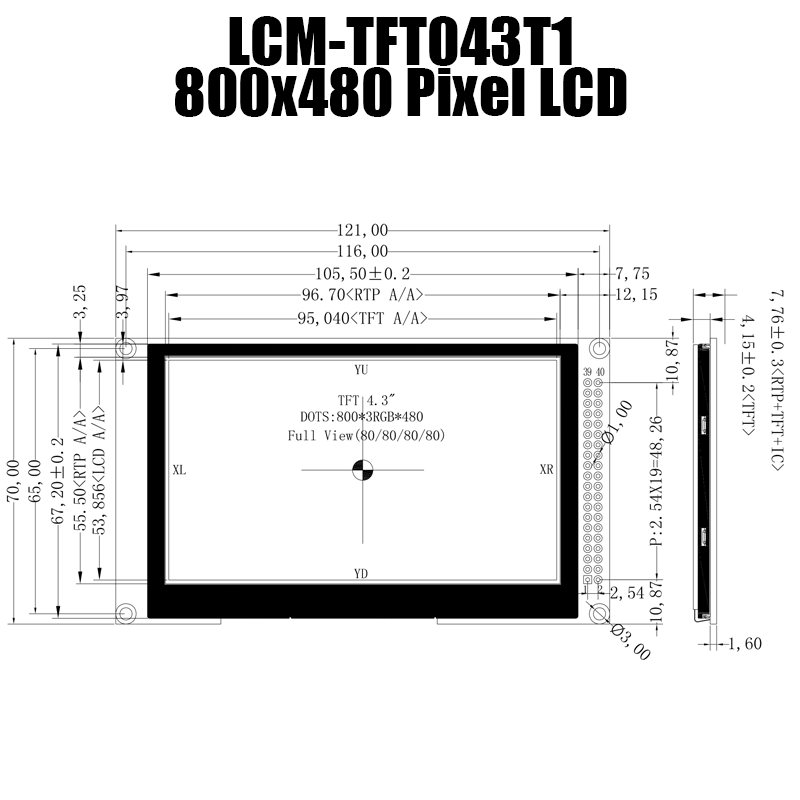 因此,鑫洪泰HOTLCD研發(fā)團隊設(shè)計一款方便客戶使用的MCU8/16位接口的4.3寸高清TFT顯示模塊 LCM-TFT043T1,具有高清800x480分辨率,高畫質(zhì),全視角,65K/262K真彩色,內(nèi)置SSD1963控制器,無需外圍電路即可連接主板(可選配連接器),單電源DC3.3V供電。此款TFT模塊可選配觸摸屏并內(nèi)置XPT2046電阻觸摸屏驅(qū)動器。
