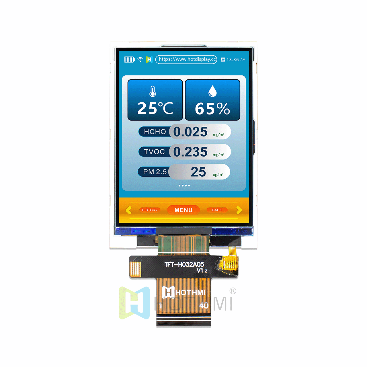 TFT-H032A05QVIST6N40是一款3.2寸彩色液晶顯示模塊,240x320分辨率,內(nèi)置ST7789控制器,可選配電阻式觸摸屏,高畫(huà)質(zhì),寬視角,支持8080 8-bit、16-bit并行接口與3線、4線串行接口,65K/262K真彩色,FPC連接(可選配連接器),3.3V電壓,支持橫屏或豎屏顯示。所有材料均符合環(huán)保要求RoHS標(biāo)準(zhǔn),此款模塊廣泛應(yīng)用于各式儀器儀表、智能設(shè)備等,適用于多種單片機(jī)開(kāi)發(fā)平臺(tái)如8051、PIC、AVR、ARDUINO、ARM和樹(shù)莓派Raspberry Pi等